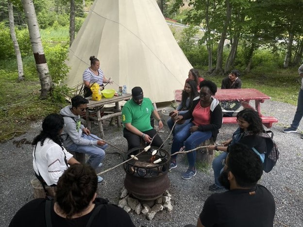 We also had the opportunity to have a hands-on experience of Mi’kmaq culture and heritage. Taking part in a smudging ceremony, learning to make four cents cake over an open fire and learning and participating in traditional dances and drumming!