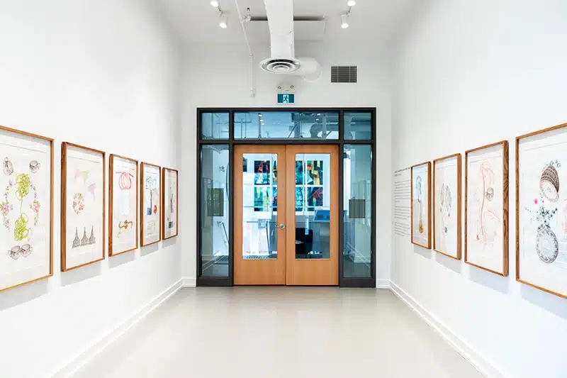 Exit the gallery and turn to your right. Continue down the hall to the first door on your right (Boardroom 207). This space may be in use or locked but Selections from Forged are visible through the window.