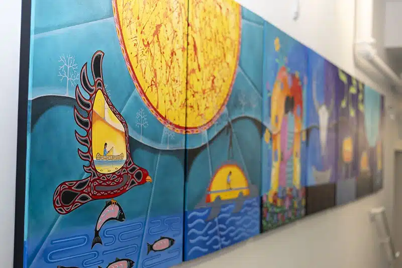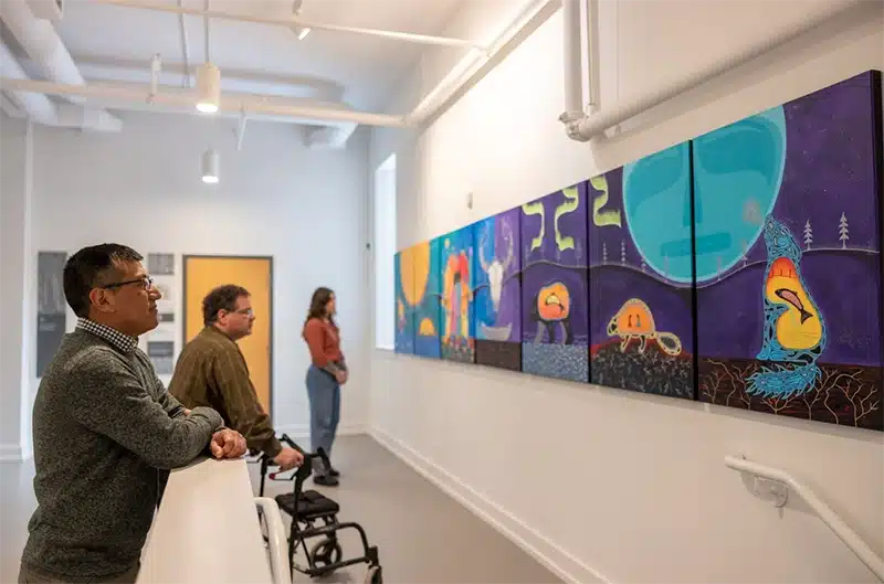Our adaptive repurposing of this heritage building, ca. 1895, illustrates our ethos of social enterprise and sustainability. It features contemporary design, high ceilings, public art, natural light, exposed foundation stone, and signage in Mi’kmaq, English, and Braille. Barrier-free access is available at all entrances, and the elevator is centrally located. Accessible, universal washrooms are available on all levels.