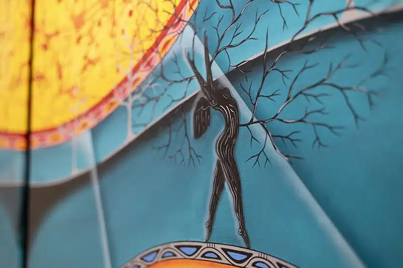 Speaking about the series, Gould explains: “These paintings are the Seven Teachings. The Seven Teachings are about life and being. You can’t have one teaching without another. These teachings are life-teachings that are passed down from generations, and generations to come. Life lessons in one glance.”